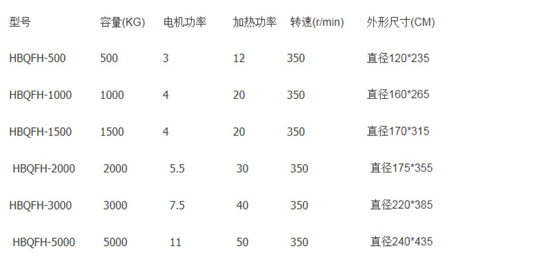 聚丙稀塑料顆粒大型熱風干燥機參數: